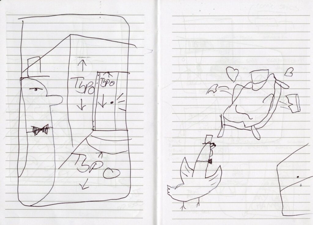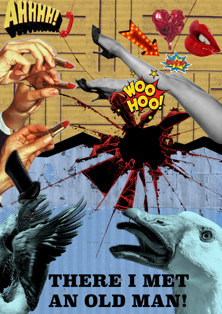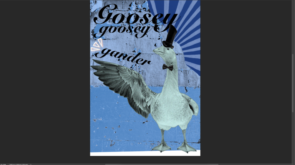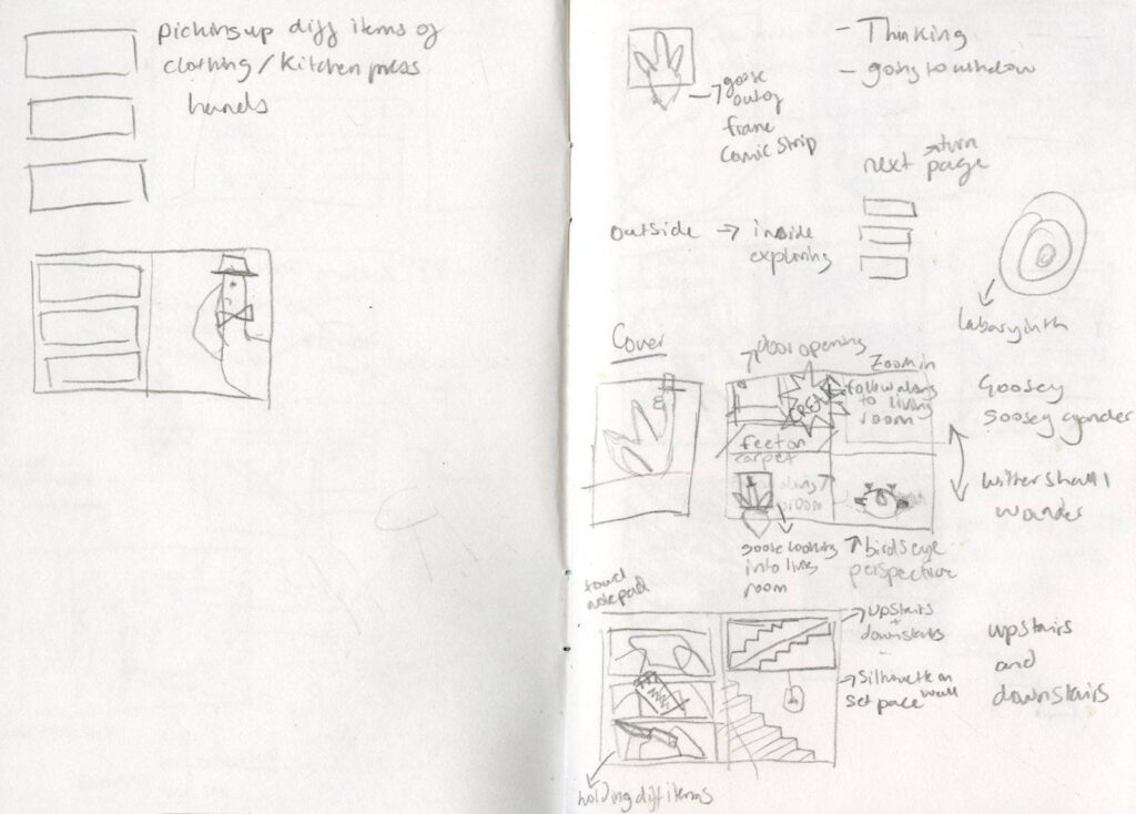Me and my Classmate Irene have been assigned to make a comic zine from the old nursery rhyme “a Goosey Goosey Gander”. For the comic we had to make 8 pages containing imagery and lines retaining to the rhyme. We decided on splitting the work between the two of us equally and do 4 pages each of the comic while matching eachothers graphical design abilities. If there was something one of us didnt know the other would teach it.