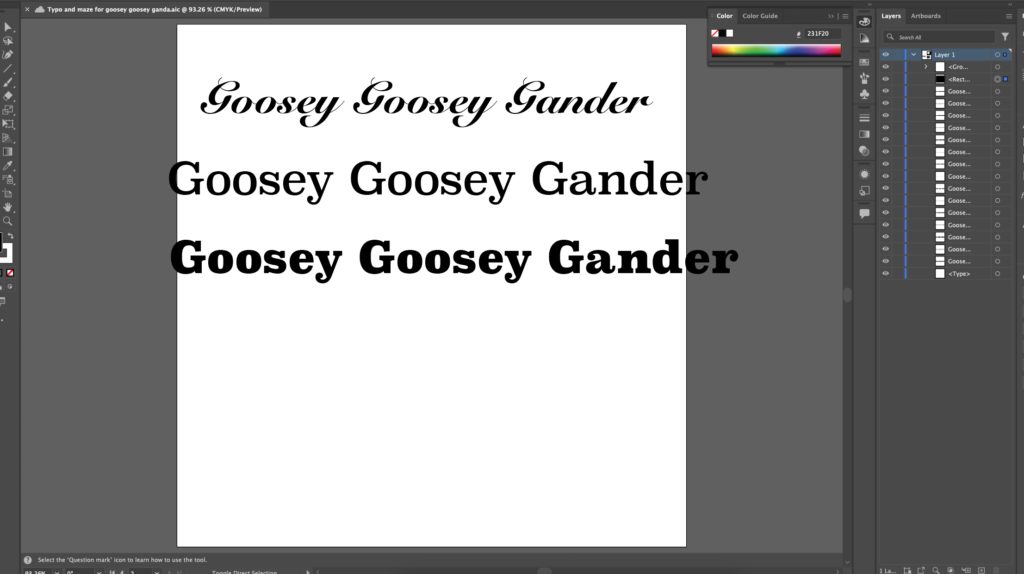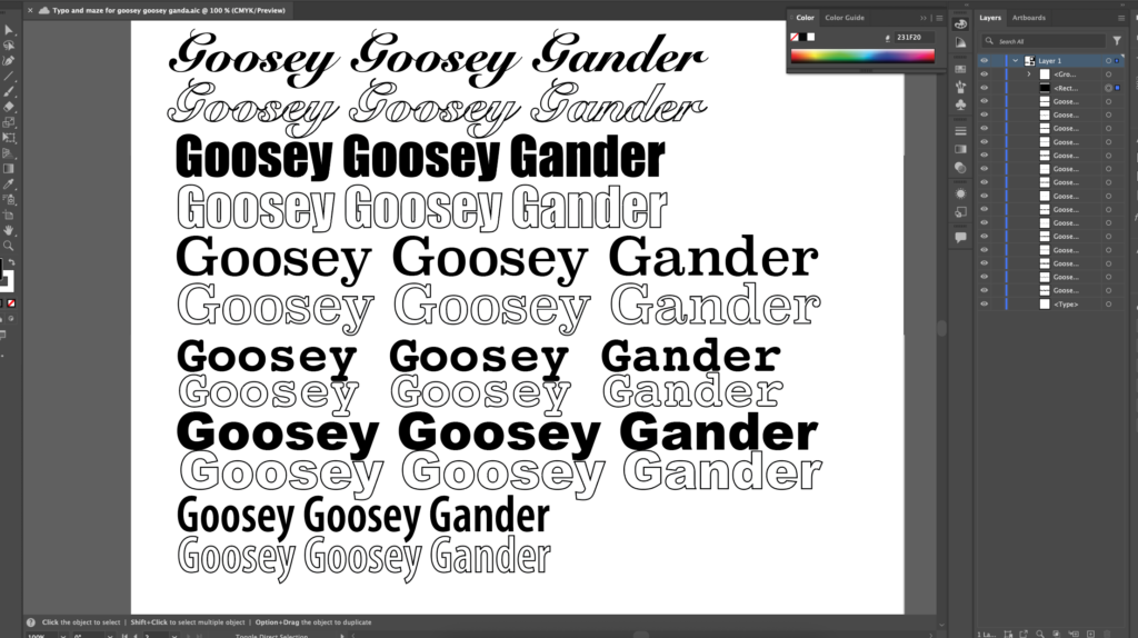 Some typo choices we made. We did script fonts to go with the more classical feel of the rhyme.